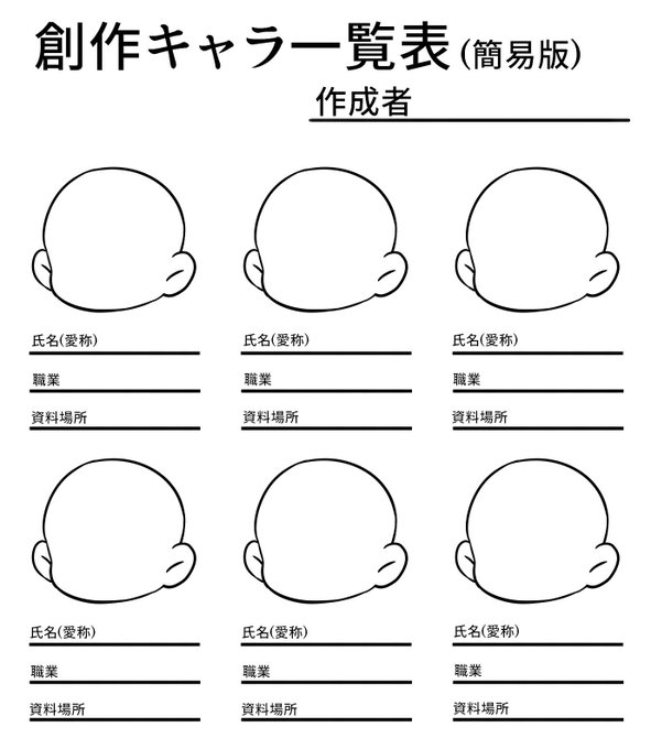 イラスト用テンプレート うちの子の免許証写真ひどすぎ選手権 うちの子衣替え 紹介用テンプレート うちの子お料理事情テンプレ うちの子紹介テンプレート キャラクター分析シート 創作子口調一覧 うちの子簡易一覧表自作キャラクターの設定を固めるために。 読者サービスの一環として。 或いは暇つぶしに。 ご自由にご利用ください。 cgキャラクター、ゲームmyキャラよりはむしろ創作小説の登場人物向けの内容です。 異世界ファンタジー小説のキャラクターには『異世界FTキャラを質問攻め(50項目)』や上 キャラクター 設定表 テンプレ キャラクター 設定表 テンプレ キャラクター設定用テンプレート2 コンテンツID: 159 問題のある素材です 無料 収録されている素材集を見る 素材の使い方 利用できる範囲 画像素材 この度は先週お伝えした通り、今年スタート予定の新連載マンガ情報です